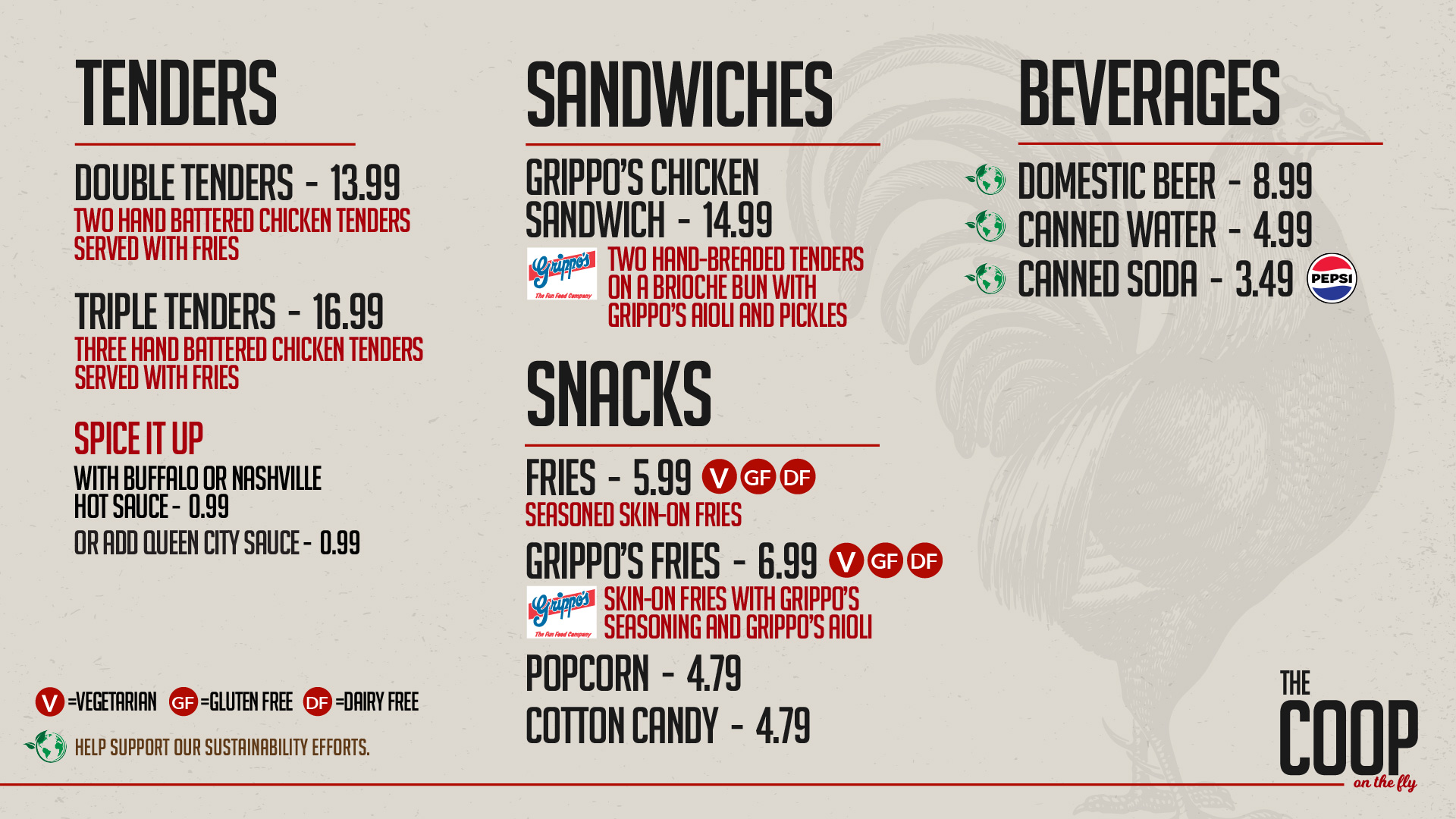 Located in The Grove, we serve up delicious, fresh, hand-breaded chicken tenders made to order. Craving some heat? Kick it up a notch with Buffalo or Nashville Hot Sauce for an extra flavor boost!