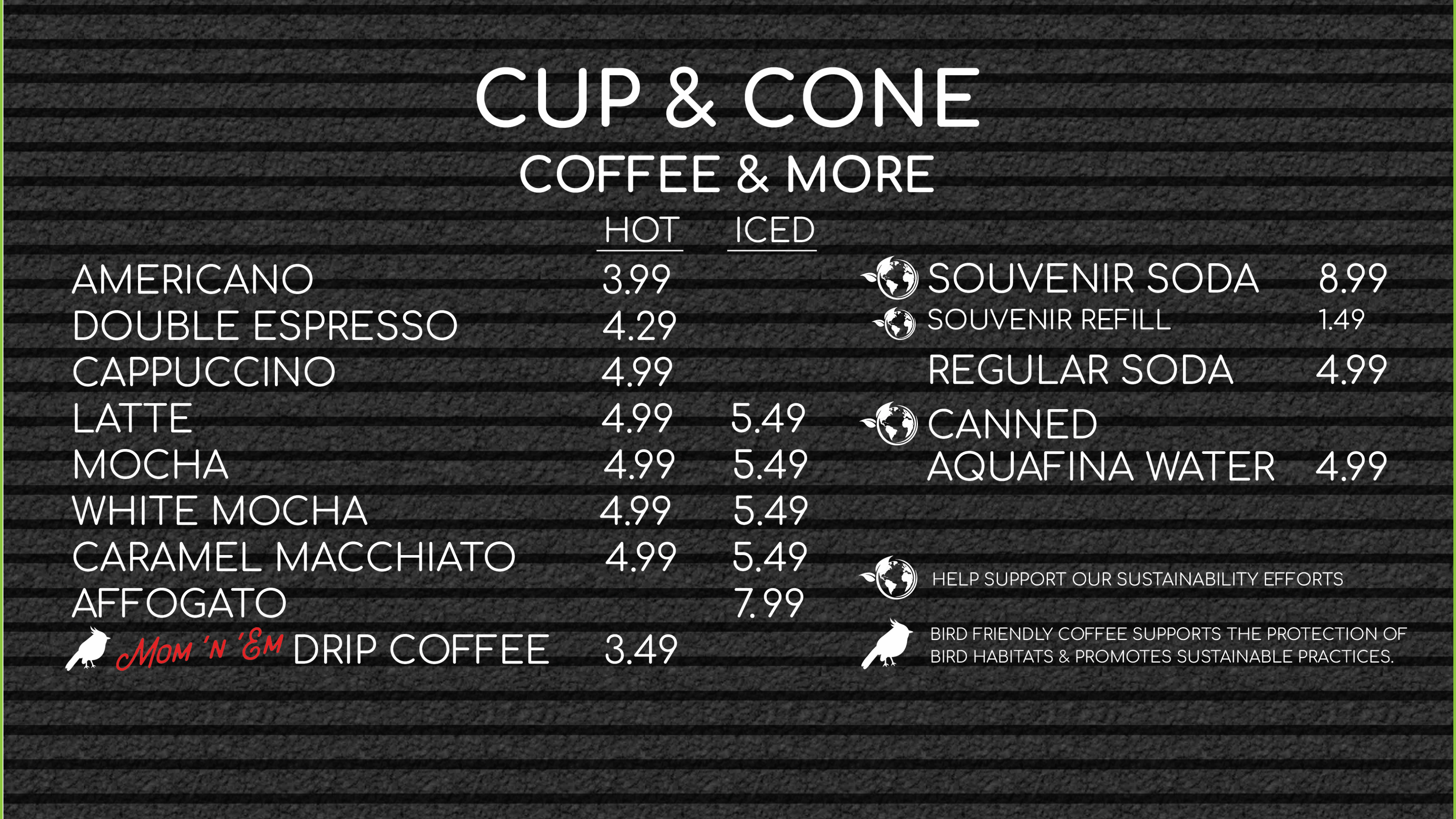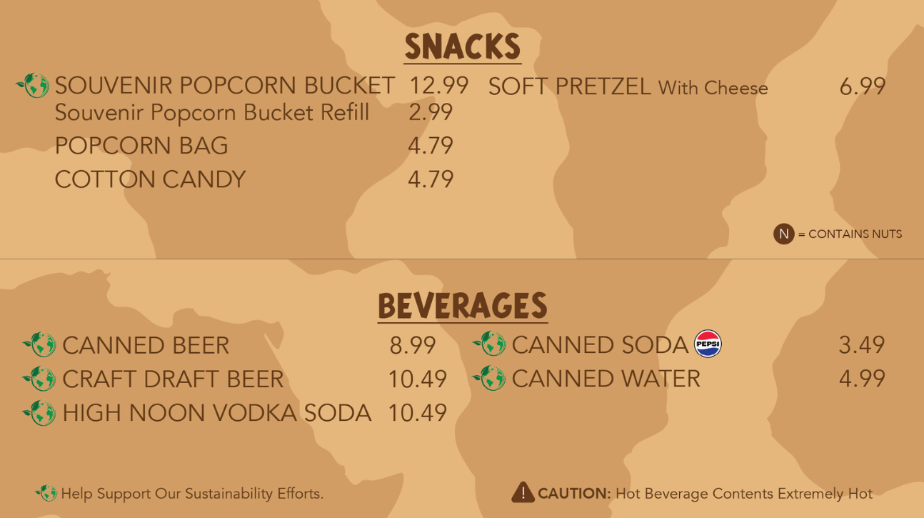 Swing by Canopy Canteen for a delicious treat and a refreshing break! Enjoy creamy Vanilla or Chocolate soft serve in a cup or cake cone, topped with your choice of rainbow or chocolate sprinkles. Craving something extra sweet? We also offer a variety of tasty snacks, ice-cold Pepsi fountain drinks, and our largest selection of ICEE® flavors. Don’t forget—this is also the spot to refill your souvenir popcorn bucket!