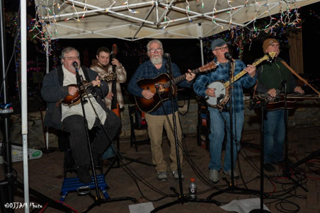 Guitarist and bandleader Jonny Estep is the primary singer and emcee of the group. Mandolinist Phil Lawrence adds his “high lonesome” tenor vocals to the mix. Banjo player Ahmad Maghathe brings the punch and drive expected of any premier bluegrass ensemble. Gil Benson’s fiddle playing adds that smooth sound that gets toes tapping and eyes watering. Rounding out the group, Adam Hicks provides a rock solid foundation with his thumping bass playing.