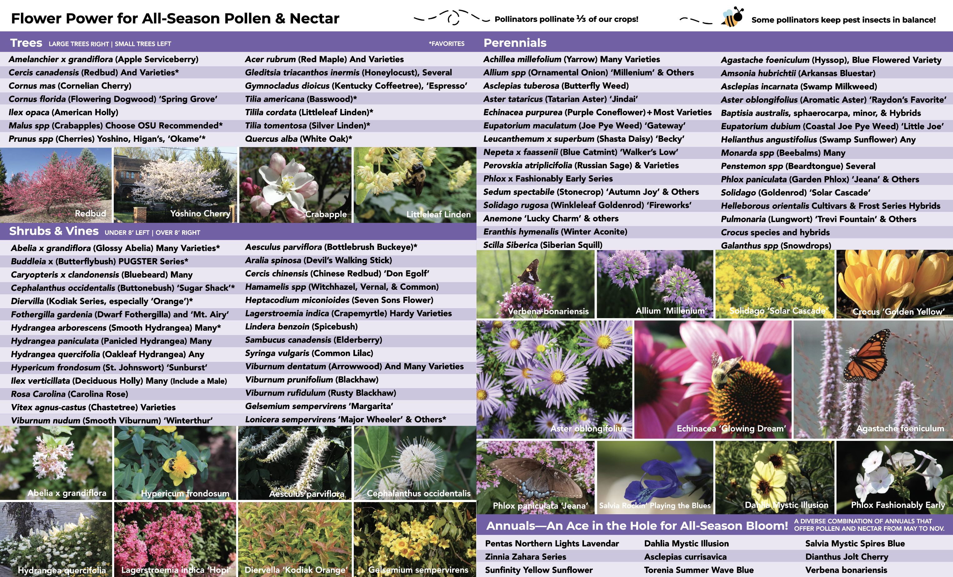 Flowering perennials that return year after year are great plants for pollinators. The primary importance of perennials is to provide nectar and pollen, though some are also good host plants. Most perennials bloom for short periods of time so it’s a good idea to include perennials that bloom at different times during the season in your garden.