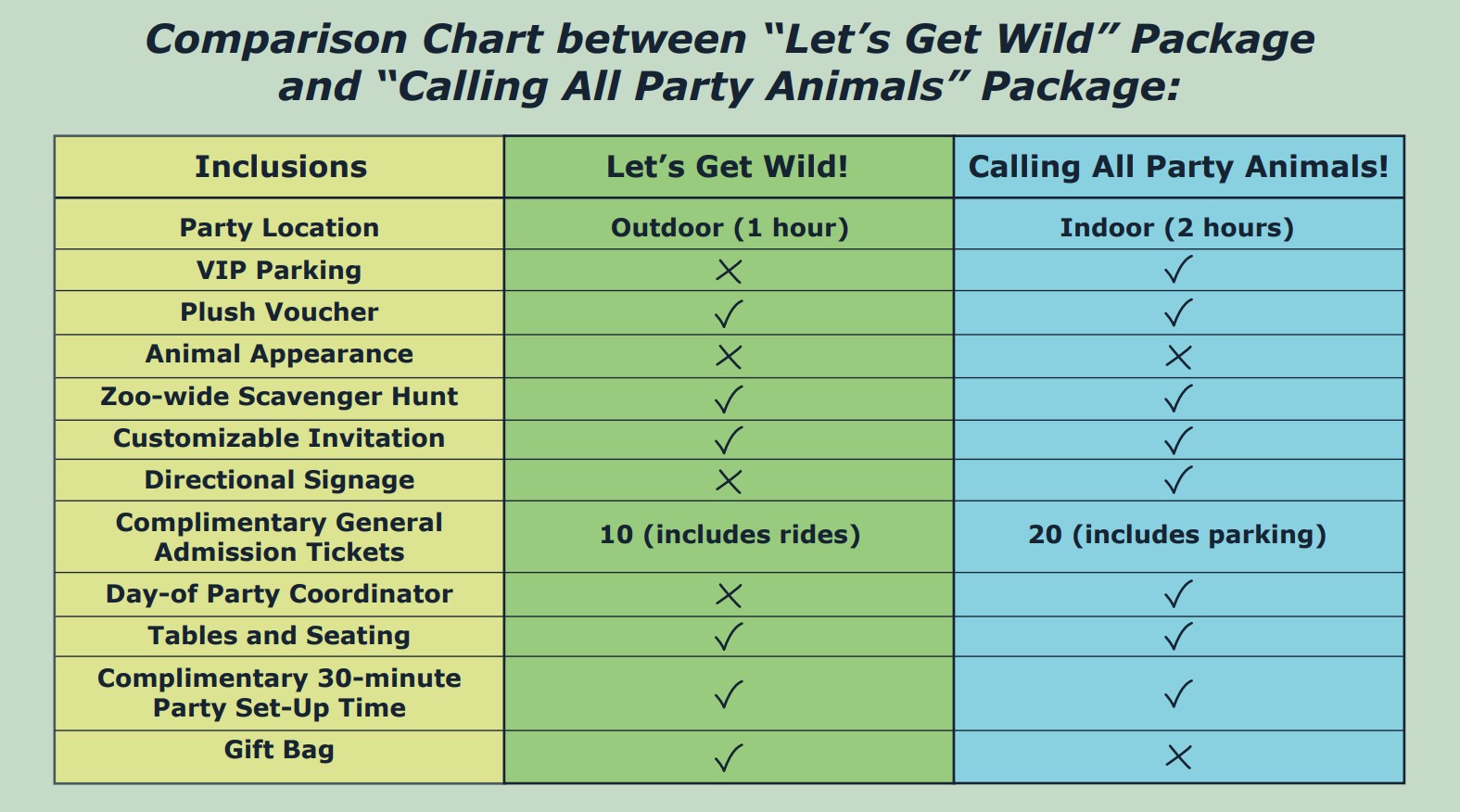 - Package Availability: Calling All Party Animals, Let’s Get Wild