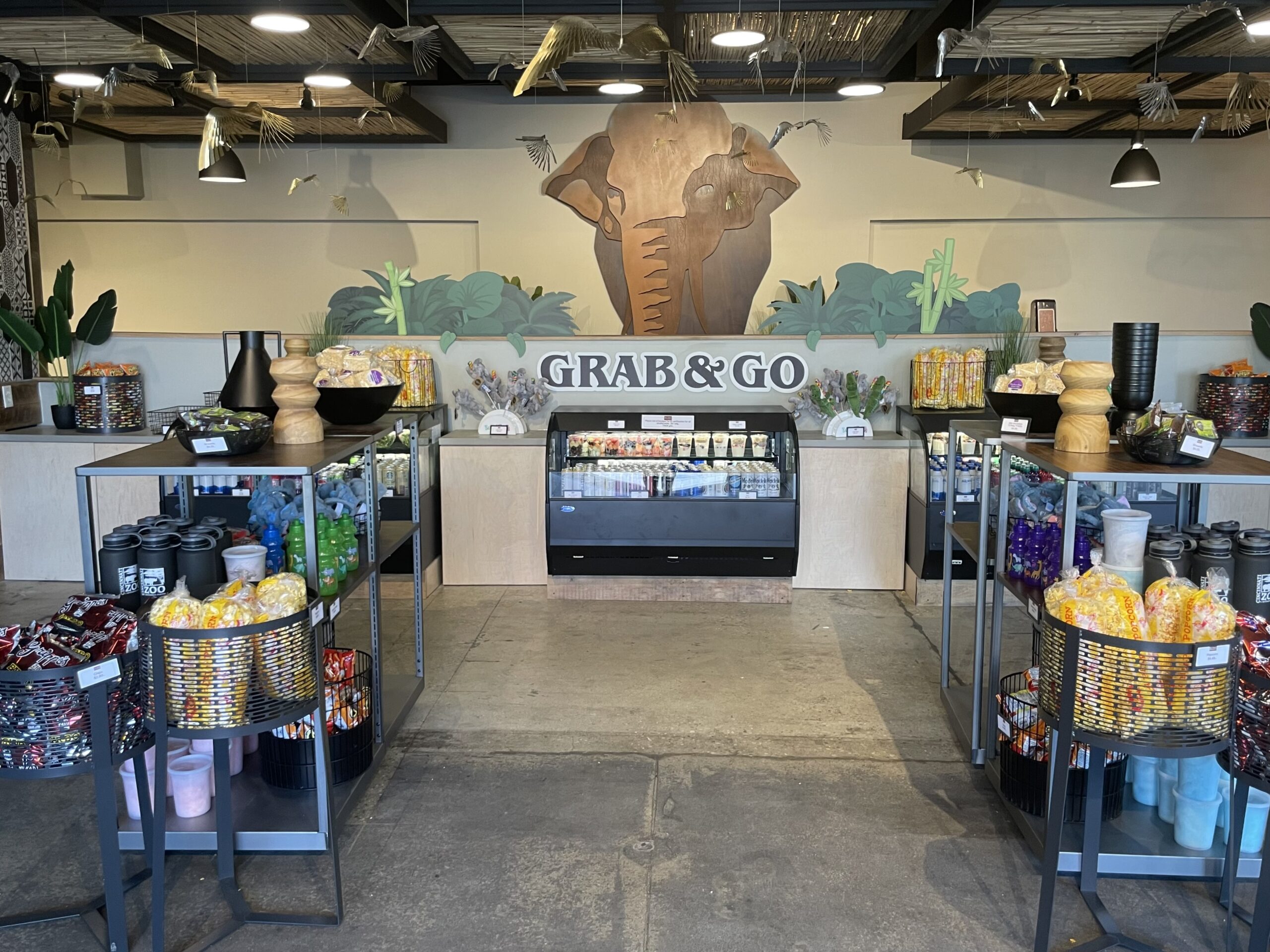 Explore the convenient Grab and Go section at Mai Thai’s Marketplace, stocked with your favorite zoo snacks like fresh popcorn and fluffy cotton candy, plus freshly made wraps, crisp salads, and refreshing drinks—including a selection of canned beer. For an effortless shopping experience, browse our retail selection and check out quickly with our self-serve kiosks. Whether you’re grabbing a bite or a unique souvenir, we’ve got you covered!