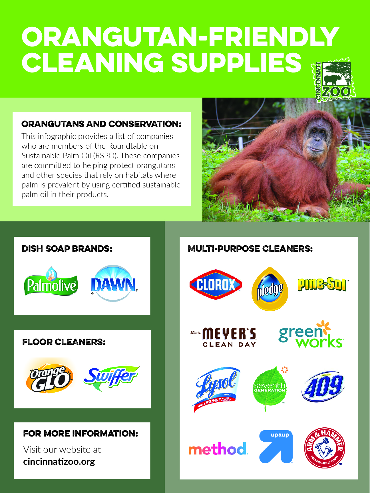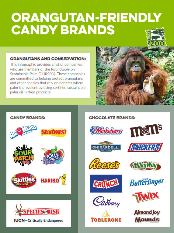 As consumers, we can choose to buy products made with sustainable palm oil as certified by the Roundtable for Sustainable Palm Oil (RSPO). Below is a helpful guide for purchasing items made with certified sustainable palm oil.