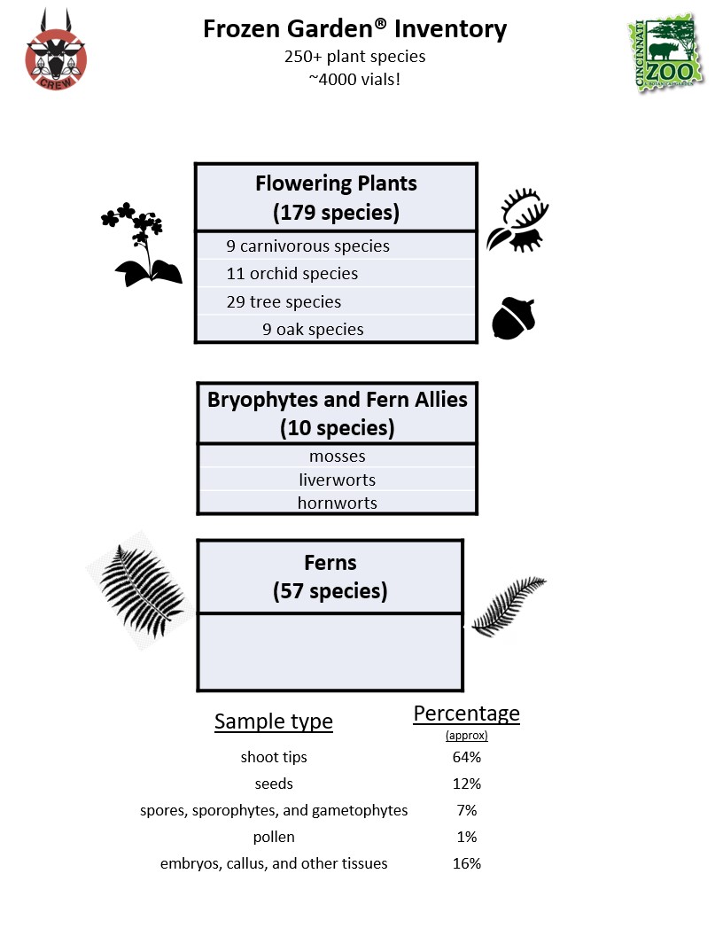 At the heart of The Lindner Center for Conservation and Research of Endangered Wildlife (CREW) is the CryoBioBank®, known scientifically as a genome resource bank. CREW’s CryoBioBank® contains thousands of samples representing hundreds of animal and plant species all stored in tanks of liquid nitrogen at -196° C. Plant samples include seeds, spores, tiny shoot tips and embryos, whereas animal samples include sperm, oocytes (unfertilized eggs) and embryos. Our world-renowned scientists form critical partnerships with other leading conservationists and governmental and non-governmental organizations to achieve CREW’s mission to Save Species with Science®.